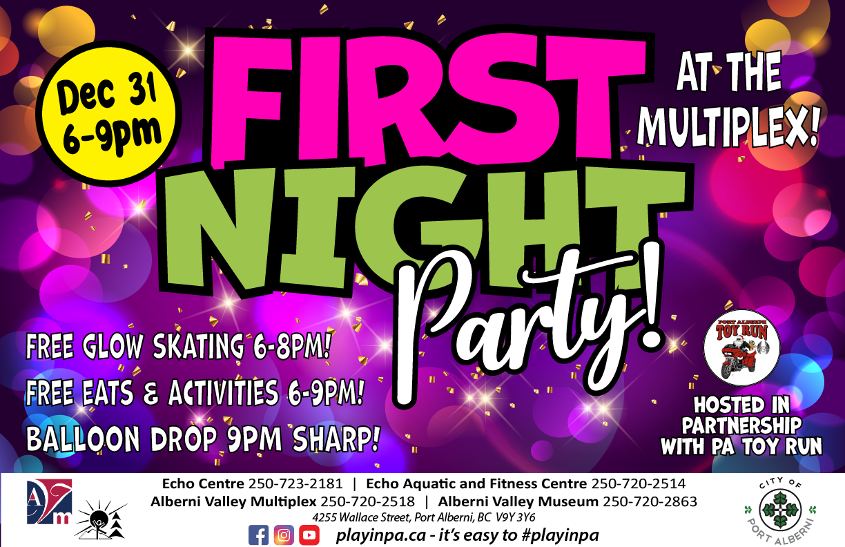Join the City of Port Alberni Parks, Recreation & Culture Department and the Port Alberni Toy Run to celebrate the coming of 2026 with FREE glow skating, food, activities & the infamous balloon drop!