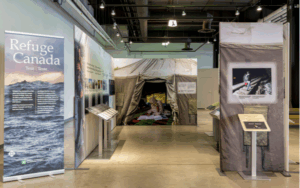 Refuge Canada Tent raises awareness of the complex issues surrounding the history of refugees in Canada. Drawing upon oral histories, archival images and interactives, this immersive exhibit serves as an introduction to the context for Canada's place in the global refugee crisis and brings to light the challenges faced by refugees in Canada. Languages: French/English