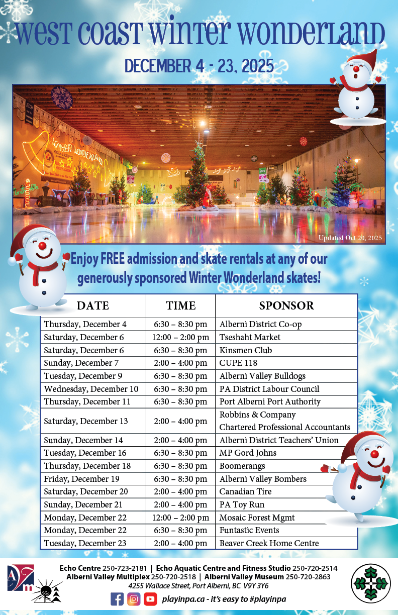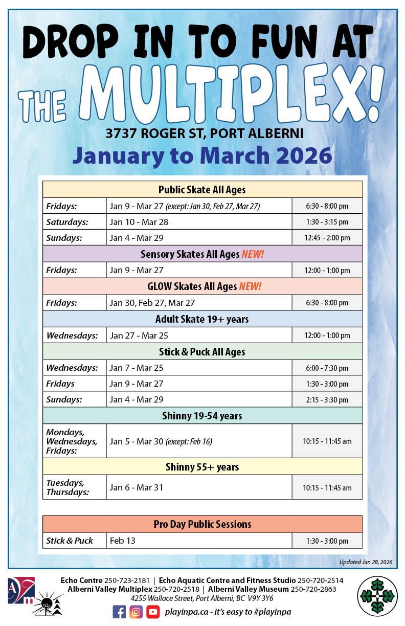As our schedules can change with no notice, we ask that you follow the “live” schedule below. If you would like a schedule to download and print at home, please scroll down.